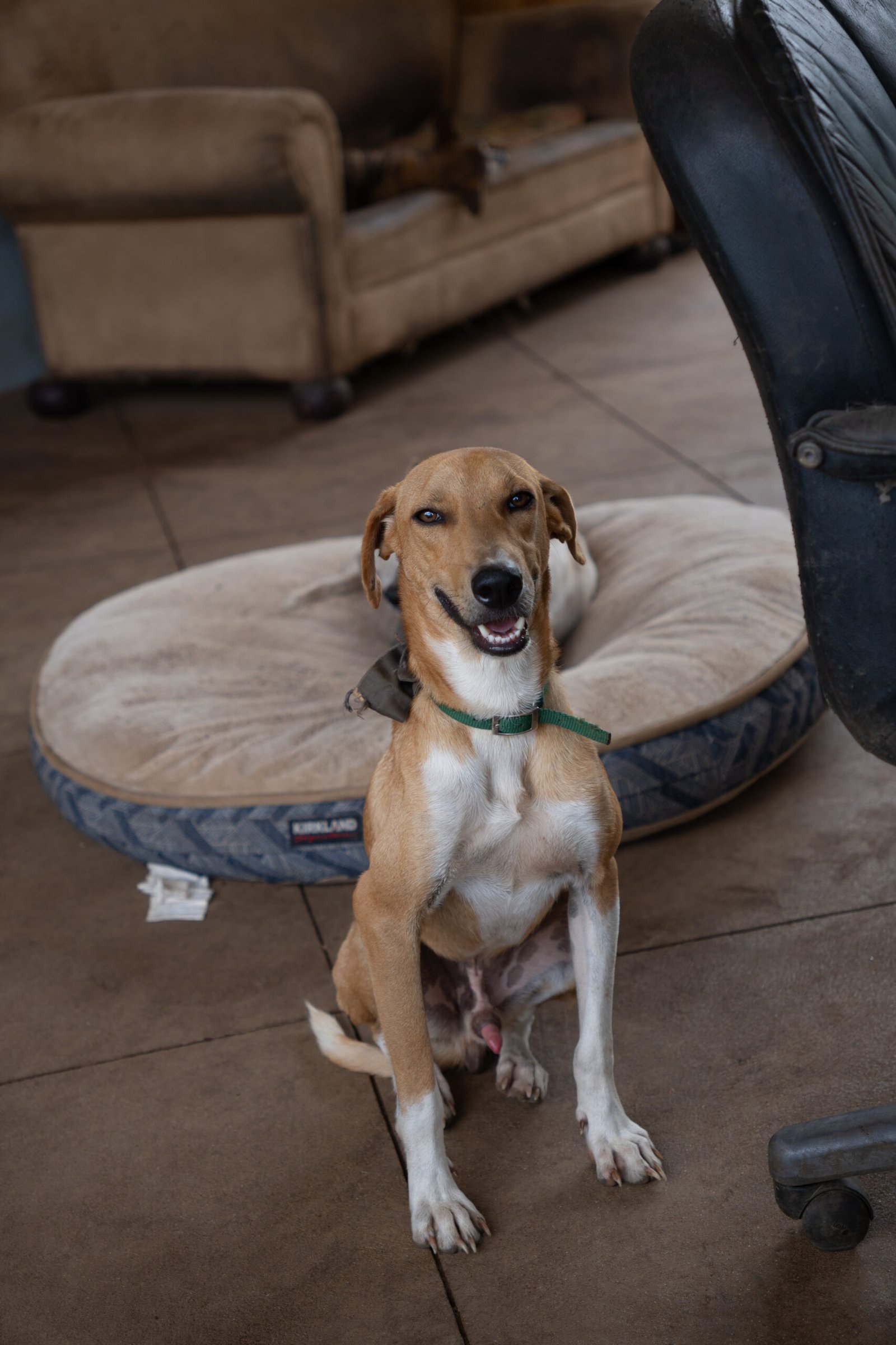 Tornillo fue atropellado y sufrió una grave lesión que provocó que sus intestinos quedaran alojados en el tórax. Aun con esta condición, es un perrito tranquilo y resistente que requiere cuidados especiales permanentes y seguimiento veterinario. Su tamaño es mediano a grande y su adopción debe ser completamente consciente, por parte de una familia comprometida con brindarle calidad de vida.